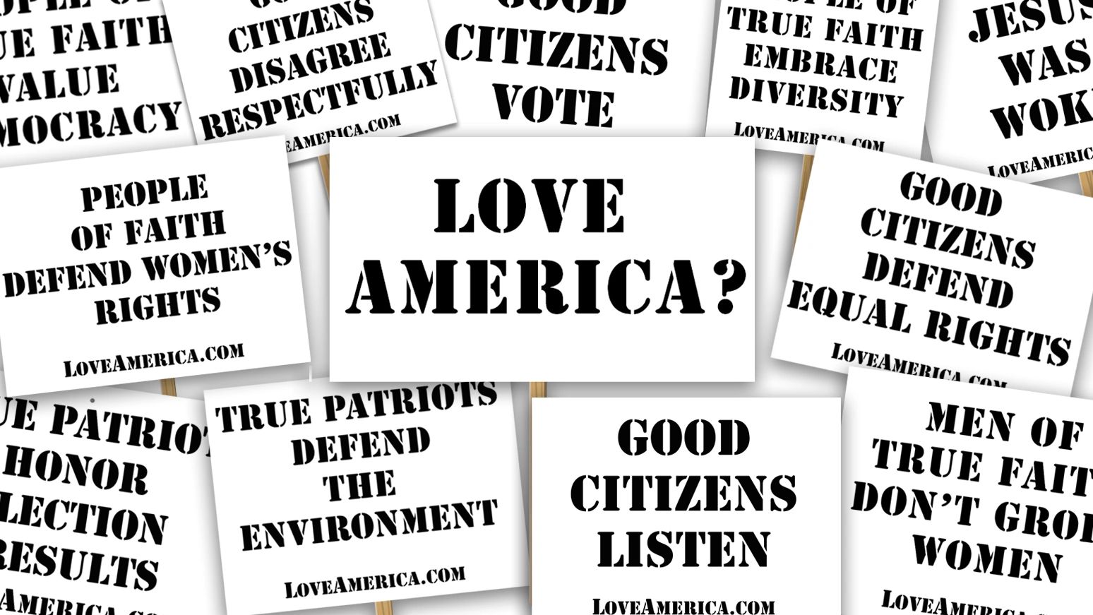 Good citizenship is about more than allegiance - it's about responsibility. Courageous and outspoken, a Good Citizen is duty-bound to defend the values and principles that make America truly great - democracy, equality, freedom, fairness, inclusivity, and yes, diversity. That's why a Good Citizen welcomes all. A Good Citizen defends their neighbor's rights as they would their own, knowing that injustice anywhere is injustice everywhere. A Good Citizen advocates for the Common Good and works tirelessly to build a country that works for everyone. At LoveAmerica, we believe that as Good Citizens each of us has a sacred assignment to not only protect our Constitution and keep its supporting institutions strong, but also to ensure that a legacy of freedom is guaranteed for generations of Americans to come.